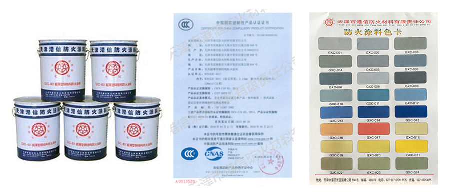 室内膨胀型钢结构防火涂料由丙烯酸乳液及N-P-C阻燃剂体系原料及颜填料、助剂组成。基料为水性乳液,无毒无害,该涂料涂层遇火迅速变软,继而发泡膨胀形成致密的隔热层,以阻止火势蔓延及辐射热量,从而提高钢结构的耐火极限。经测试涂料的耐火等级为Fp1.00、Fp1.50、Fp1.00,型号为GT-NSP-Fp1.00-GXC601、GT-NSP-Fp1.50-GXC601、GT-NSP-Fp2.00-GXC601,根据涂刷厚度的不同以对应不同极限的验收规则。